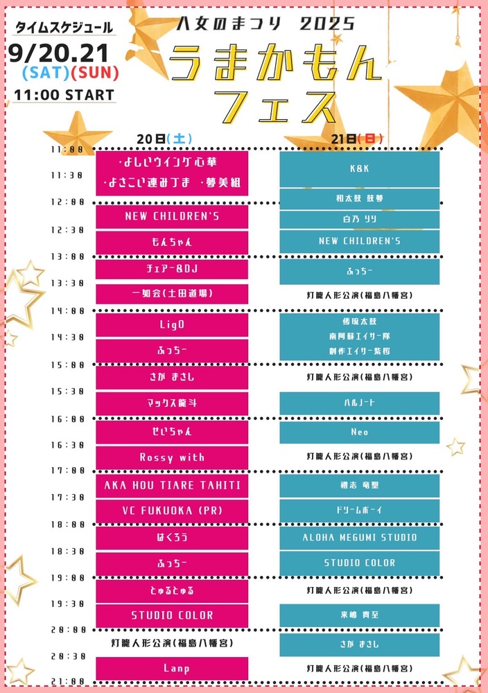 9/20 八女うまかもんフェス in 八女市 SCHEDULE 2025/09/20(土) 18:06 - 福岡県八女市八女公園にてLigO イベント出演予定✨ 観覧無料です! 出演時間14:00〜14:30 URLをコピーする 報告する